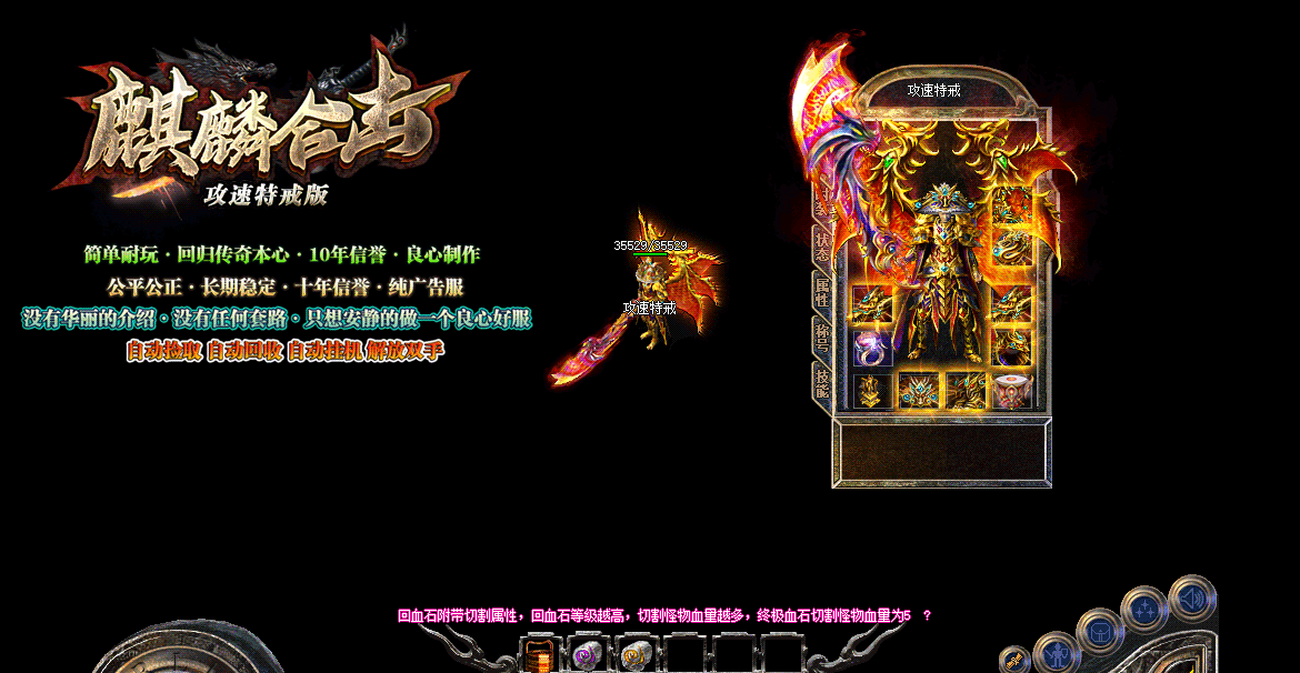 - 【版本介绍:】 首创全新玩法※打怪刀刀绿毒※元宝好打※白嫖也能到终极※只为燃爆PK激情!